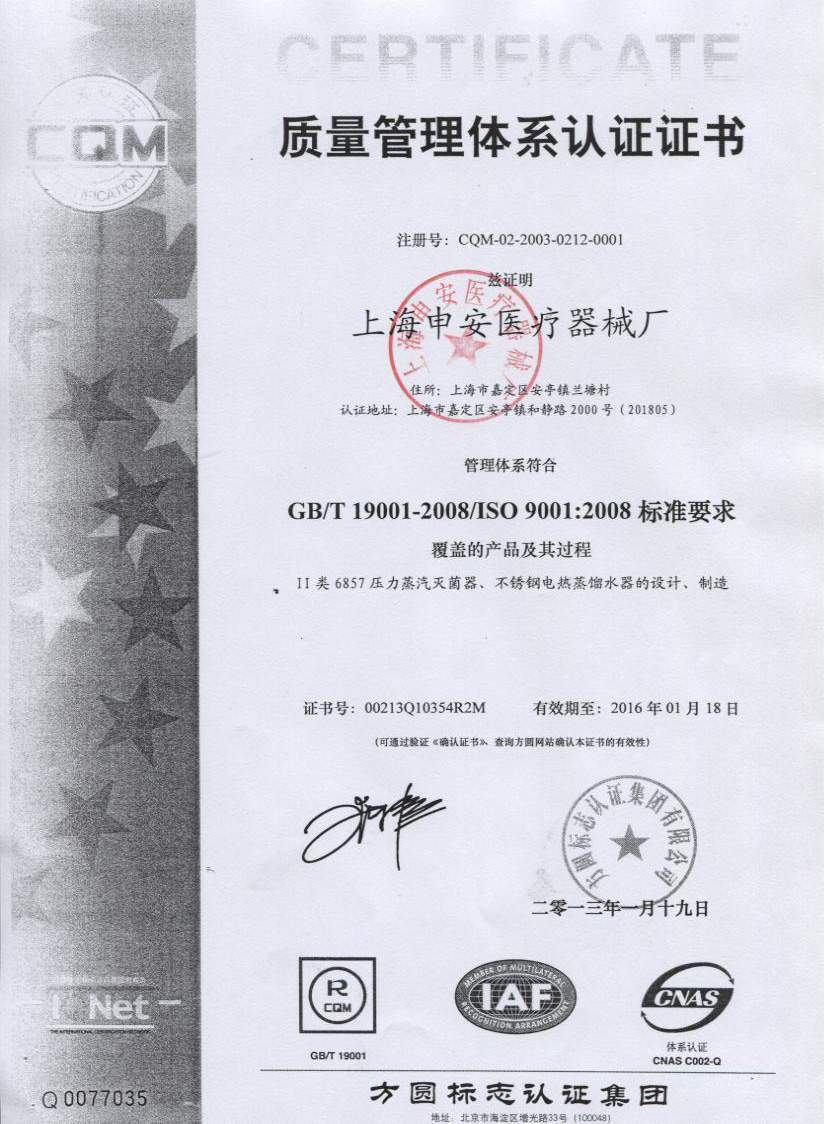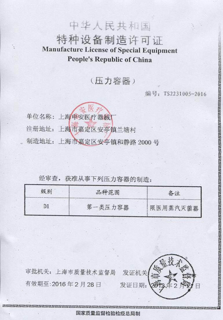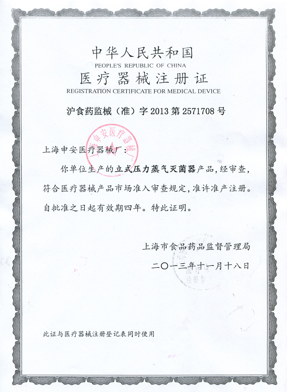 本品屬于壓力容器受控產品,符合國家對壓力容器設計與制作的相關規定,并取得了食藥監產品注冊證和消毒產品衛生許可證,是我廠研制開發的新一代智能型立式壓力蒸汽滅菌器,其結構先進可靠,具有快捷簡便的操作方式和功能齊全的控制系統,在安全控制上;具有超壓自泄、斷水保護、超溫自控的數套安全聯鎖的裝置。本品操作系統采用先進的微機自動處理技術,滅菌運行過程實行微機自動控制,操控臺上的液晶顯示窗顯示整個滅菌動態和功能運行情況,產品主要部件采用優質不銹鋼材料精制而成,滅菌指標達到國家醫用手術級標準,是各醫療衛生、大專院校、食品化工、生物科研等單位對器械、敷料、藥液、食品器皿、培養基等物品進行消毒滅菌的理想產品。
