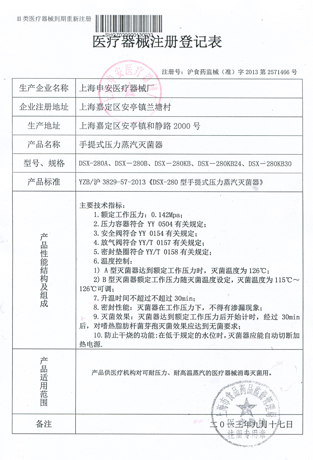 滬食藥監(jiān)械(準)字2013第2571466號