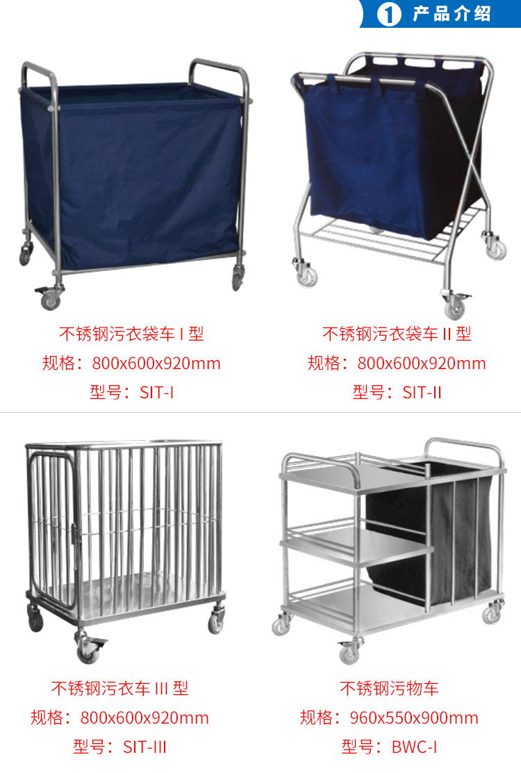 上海躍進醫(yī)院用不銹鋼污衣袋車污物被服掃床車